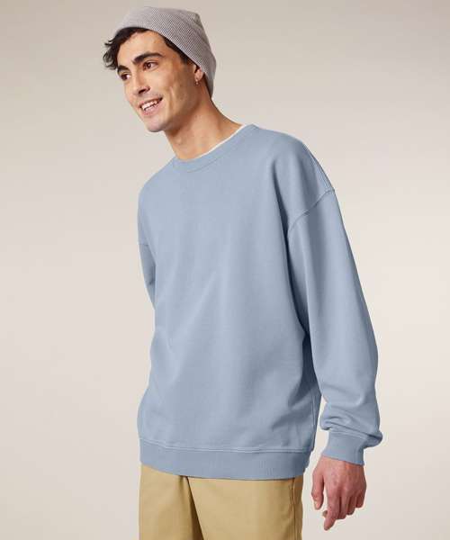 Premium, oversized, garment-dyed crew neck sweatshirt in 100% organic cotton, 350gsm. Streetwear-inspired fit and details. On-trend colours. Excellent printability.