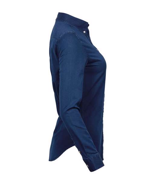 The washed, indigo, Women’s casual twill shirt has a slim and comfortable fit, detailed with a button-down collar and a curved hem. It’s a relaxed choice for the office or a weekend lunch. With its button-down collar and indigo dye, this shirt strikes the perfect balance of rugged and refined.