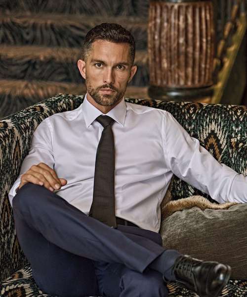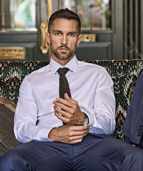 The Luxury shirt slim fit features a moderate cutaway collar and two-button cuffs. A signature twofold fine 100 double-twill fabric makes this dress shirt easy to match with any outfit – from traditional business