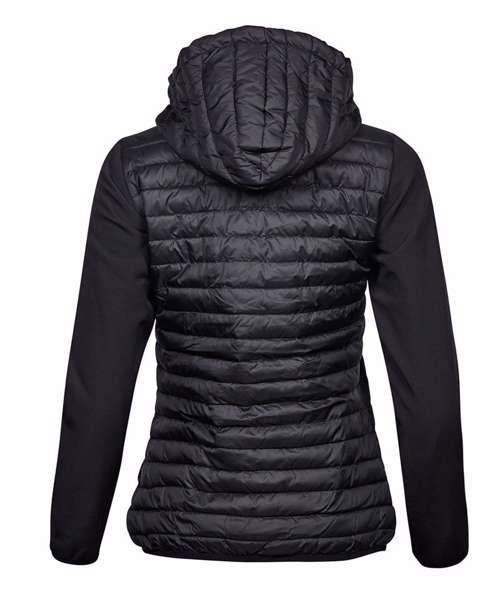 The cool Women’s hooded crossover jacket features stunning detailing such as a chest pocket with zip and an adjustable hood, making it both practical and fashionable. For a sporty look, it combines a light polyester 300T with padding and softshell. The jacket has an adjustable hem, elastic cuffs, two side pockets and an inner pocket.