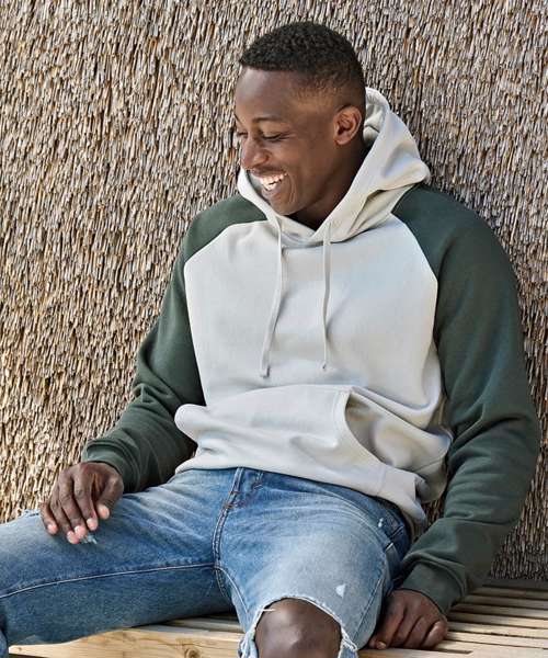 The UNLABELED two-tone hooded sweatshirt is made from a premium certified organic cotton and certified recycled polyester blend. Crafted from brushed heavyweight three-thread fabric, this garment is made for durability and comfort. It’s washable at 60˚C, double preshrunk to maintain its shape, and double-dyed for rich, lasting colour.