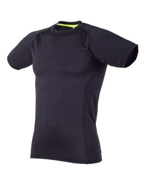 Slim fit t-shirt, 2 piece sports crew neck, shaped raglan sleeves, mesh side panels and back yoke.