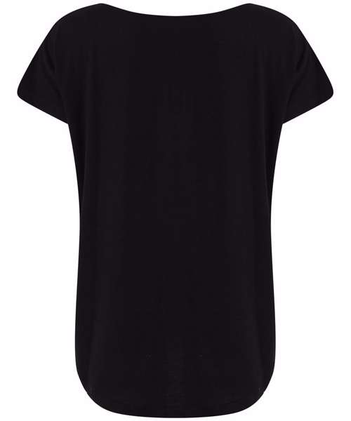 Women's scoop neck T with oversized fit and scoop neck. Dropped shoulder seams and dropped tail hem on back. Super soft fabric. Tear-out label.