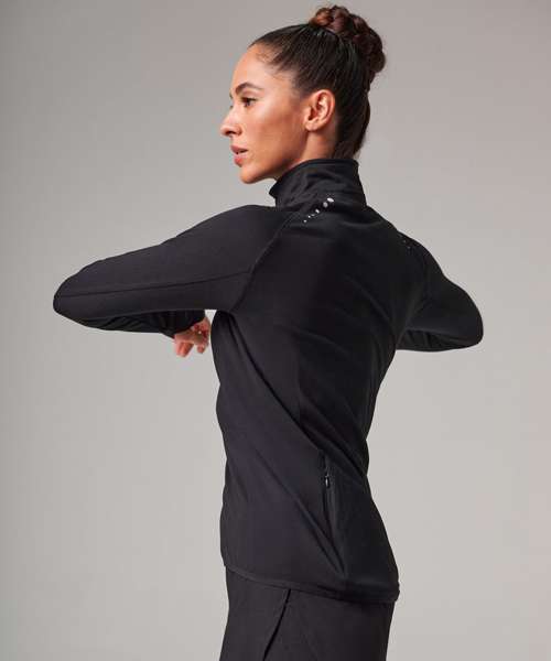 Train smarter in our ultimate 1/4 zip. Reflective zip tape and dot design on the reverse ensures maximum visibility, while the sports thumbholes and discreet fold over cuffs are perfect for when the temperature drops. The single Jersey fabric with wicking finish keeps you cool and dry, helping you to perform at your best.