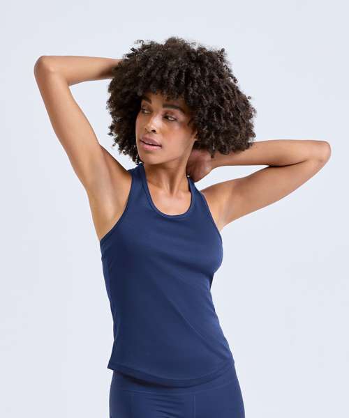 The women's TriDri® performance strap back vest features sweat-wicking fabric and a modified racerback with an elastic strap to help keep you cool and moving freely from your first set to your last.