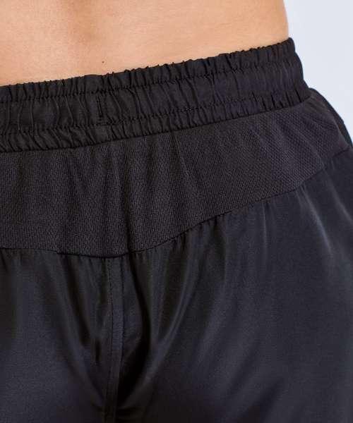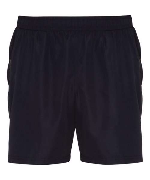 Wicking fabric. Elasticated waist. Woven fabric. Mid thigh length. Lightweight. Black heat seal tape detail on the front. Inside leg- 18cm. We recommend using block out vinyl and inks.Product contains no branded neck or waist label. Removable Kimble or looped garment tags. Inner seam label holds important product information on one label with a second label containing brand information which can be cut-away.