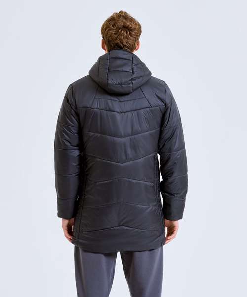 Lightweight mid-length padded jacket with diagonal quilting to centre front and back for a flattering fit. Vertical quilting side panels to body and horizontal quilting to arms. Full zip-through style with hood. Panel detailing to hood with elasticated finish for a snug fit. Internal storm flap. Zipped side pockets. Two concealed inner pockets, one left chest for storing items like a mobile phone or keys. Elasticated cuffs. Packable bag included for handy storage of jacket when not in use. We recommend using block out vinyl and inks.Product contains no branded neck or waist label. Removable Kimble or looped garment tags. Inner seam label holds important product information on one label with a second label containing brand information which can be cut-away.