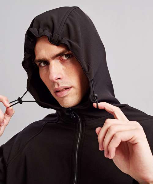 Reliable 2-layer bonded softshell jacket with hood. Full-length zip with storm flap and chin guard. Three-panelled hood with adjustable toggles. Two front zipped pockets. Elasticated cuffs. Raglan sleeves. Shaped to fit. Inner hem with adjustable toggles. Showerproof. Windproof. Two inside pockets. Easy re-label system. Product contains no branded neck label. Removable Kimble or looped garment tags. Inner seam label holds important product information on one label, with a second label containing brand information which can be cut away.