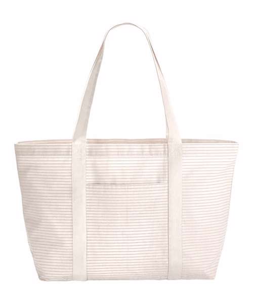 Dyed yarn. Large capacity. Deep front pocket. Can be carried by hand or over the shoulder. CutAway label for ease of rebranding. 100% Certified organic cotton.