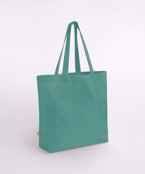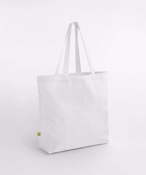 Large capacity. Can be carried by hand or over the shoulder. CutAway label for ease of rebranding. Contains 100% GOTS-certified organic cotton, certified by Control Union CU811033.