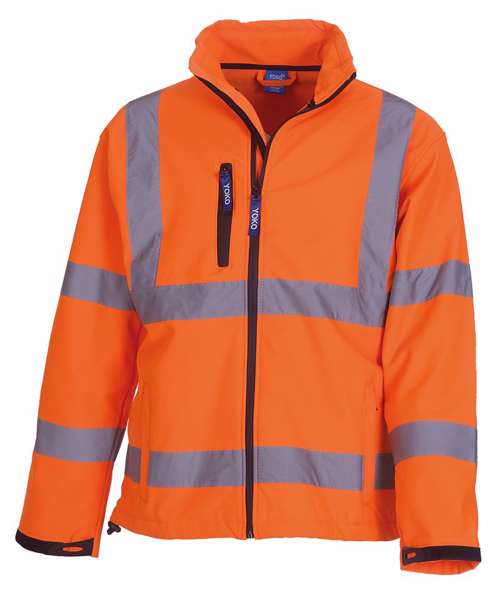 Hi-Vis Yellow & Hi-Vis Yellow/Navy, Orange and Orange/Navy conform to EN ISO20471:2013 Class 3. Orange and Orange/Navy conform to RIS-3279-TOM & approved for the railway industry. Black and Navy provides enhanced visibility. 3 layers softshell fabric ensures 8000mm breathable & 3000 mvp waterproof. Outer layer: 100% polyester. Middle layer: TPU membrane. Inner layer: 140D warm & comfort microfleece. 5cm width reflective tapes around the body and arms, one over each shoulder. 100% waterproof zippers & branded zipper pullers applied to the front and chest pocket. 2 hand warmer pockets with zipper fastening. Rubber cuff adjusters & draw cord hem adjuster. Shaped lower back for style. Navy contrast helps to provide a corporate image and hide scuff marks.
