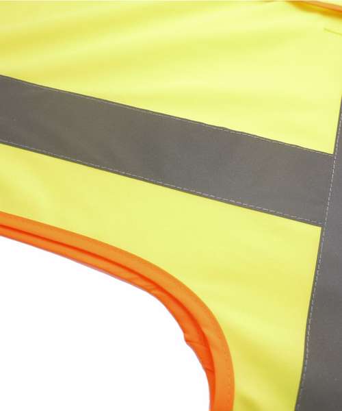 Nice and simple, two-tone contrast waistcoat made from recycled 100% polyester fabric with hook and loop fastening. Two 5cm-width reflective tapes around the body and one over each shoulder. Hi-vis Yellow/Orange conform to EN ISO20471:2013 Class 2. All other colours conform to EN ISO20471:2013 Class 1. Certified Sedex and OEKO-TEX®.