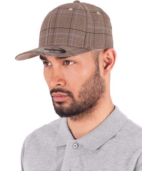 Cap with two faces. Traditional glen check pattern. Typical casual Flexfit style. Reinforced front.