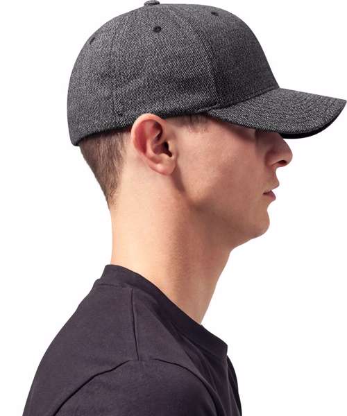 Cap with classic Flexfit shape. Natural, mottled fabric pattern. Pre-bent visor with 6 decorative seams. Reliable Flexfit sweatband.