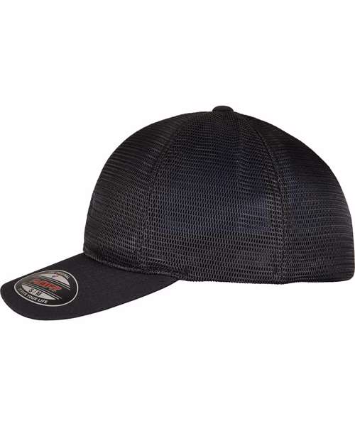 A masculine cap that offers its wearer fine material, fit and look. It is entirely made of breathable mesh. The polyester material and small amount of elastane ensures heavenly wearing comfort. Furthermore, the smooth fit of the cap is being maximized by its integrated Flexfit technology. It comes as a one size fits all and without the need for an extra closure. The opaque pre-bent visor with its eightfold decorative stitching ensures urban style.